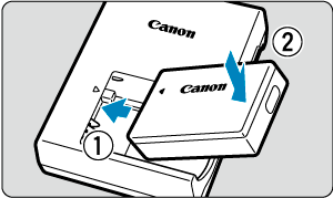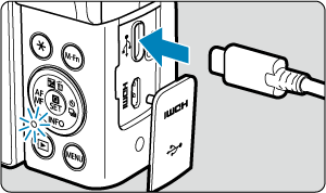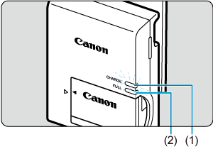 - Dacă lampa de încărcare nu luminează sau apare o problemă în timpul încărcării (lampa de acces clipeşte cu portocaliu), scoateţi cablul de alimentare, reataşaţi bateria şi aşteptaţi câteva minute înainte de a-l conecta din nou. Dacă problema nu se rezolvă, duceţi aparatul la cel mai apropiat Centru service Canon.