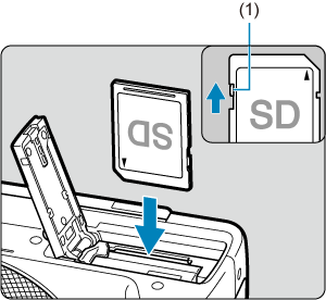 - Asiguraţi-vă că butonul de blocare la scriere/ştergere (1) este poziţionat în sus.