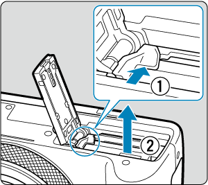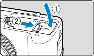 Deplasaţi comutatorului pentru blocarea compartimentului pentru card/baterie şi deschideţi capacul.