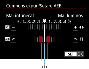 - Indicele AEB este afişat pe indicatorul pentru nivelul de expunere.