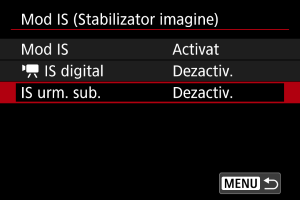 ) pentru a dezactiva stabilizarea imaginii cu IS digital film.