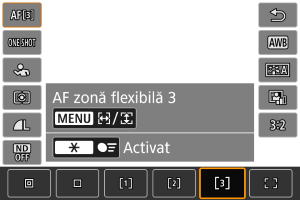 Puteţi seta manual punctul AF sau cadru zonă AF. Ecrane pentru acestea sunt afişate când setaţi la AF zonă flexibilă 1.