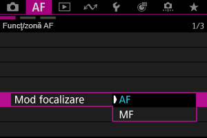 Setare manuală Cadre AF
