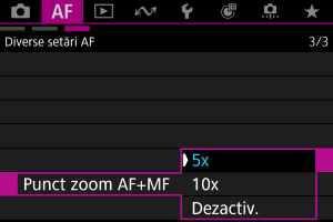 - Setare manuală Cadre AF