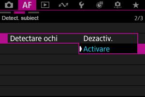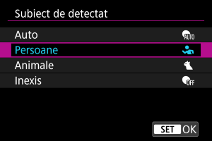 (Când subiectul pentru detectare este setat la [Persoane], animalele pot fi selectate doar în timpul AF Servo.)