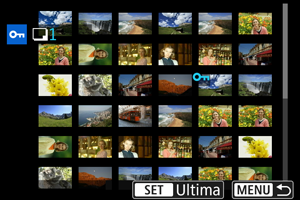 În timp ce priviţi imaginile din afişajul index, puteţi specifica prima şi ultima imagine pentru un interval pentru a proteja toate imaginile specificate.