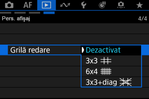: Grilă redare] este setat la o altă opţiune decât [Dezactivat].
