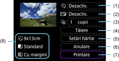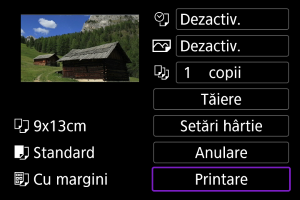 - [Printare] poate fi selectat doar când o imagine este selectată şi imprimanta este pregătită de imprimare.
