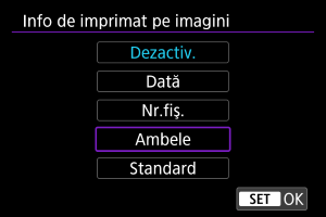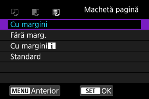 - Pentru procedurile de setare a imprimării, consultaţi Comandă imprimare (DPOF).