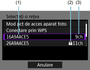 Selectaţi [Mod pct de acces aparat foto] pe ecranul [Selectaţi o reţea].