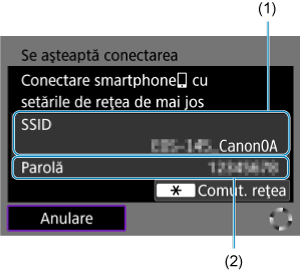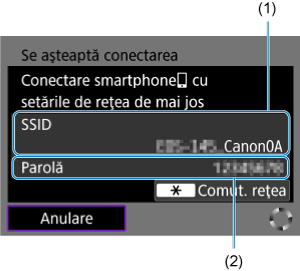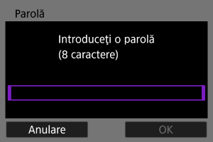 - În setările Wi-Fi ale celuilalt dispozitiv, selectaţi SSID (denumirea reţelei) afişată pe ecranului aparatului, apoi introduceţi parola.