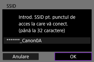 Conectaţi la un punct de acces prin introducerea (sau ESS-ID).