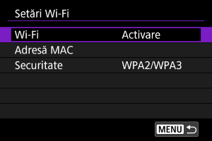 Selectaţi protocolul de Securitate pe care să îl folosiţi când vă conectaţi în mod punct de acces aparat.