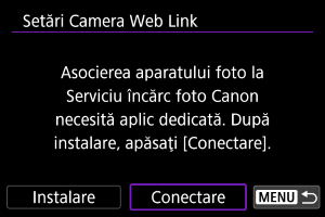 - Dacă nu a fost instalată deja aplicaţia dedicată, selectaţi [Instalare].