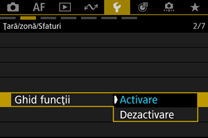 Selectaţi [: Ghid funcţii] ().