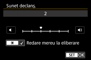 : Mod declanşator], cu [Redare mereu la eliberare] selectat în setările [Sunet declanş.].