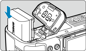 Introduceţi o baterie LP-E6P complet încărcată în aparat.