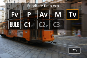 În acest mod, setaţi timpul de expunere iar aparatul setează automat diafragma pentru a obţine o expunere standard care se potriveşte cu luminozitatea subiectului. Un timp de expunere mai scurt poate îngheţa acţiunea unui subiect aflat în mişcare. Un timp de expunere mai lung poate crea un efect de neclaritate, dând impresia de mişcare.