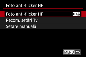 Selectaţi [Foto anti-flicker HF].