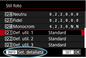 - Puteţi readuce la valorile implicite stilul şi setările [Def. utilizator. *] dacă selectaţi [Setări de bază] în [