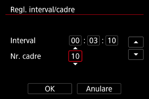- Selectaţi o opţiune pentru setare (ore: minute: secunde / Număr de fotografii).