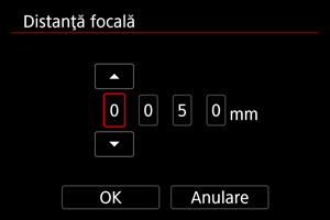 - Distanţa focală poate fi setată în intervalul 1–1000 (în paşi de 1 mm).