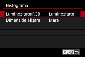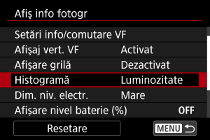 Puteţi selecta conţinutul şi dimensiunea afişării pentru histogramă.