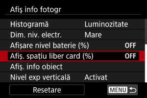 Puteţi afişa pe ecran spaţiul liber de pe card.