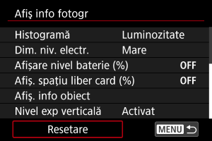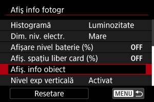 Puteţi personaliza detaliile şi ecranul cu informaţii afişat pe ecran sau în vizor când înregistraţi.