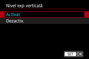 Puteţi afişa sau ascunde indicatorul vertical pentru nivelul de expunere afişat în partea dreaptă a ecranului.