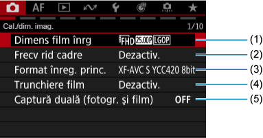 Filă meniuri: Înregistrare filme