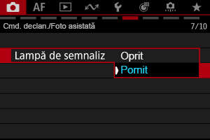 Când setaţi la [Activ], lampa de avertizare se aprinde sau clipeşte după cum urmează.