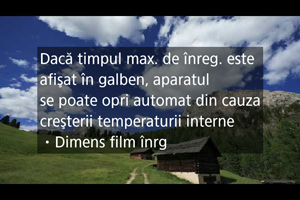 Dacă veţi înregistra pentru o perioadă extinsă de timp, luaţi în calcul să modificaţi setările indicate (dimensiunea de înregistrare a filmului), astfel încât să puteţi înregistra fără ca aparatul să vă afişeze indicaţiile.