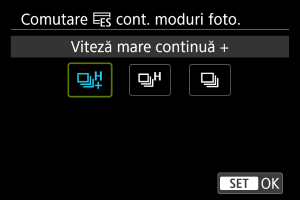 - Selectaţi modul de fotografiere continuă pe care să îl alocaţi butonului, apoi apăsaţi