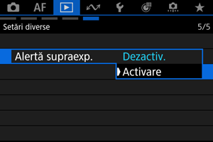 Puteţi specifica dacă să clipească afişajul în zonele supraexpuse pe ecranul de redare. Pentru a obţine mai multe detalii în imagini în zonele care clipesc unde doriţi să fie reprodusă mai bine gradaţia, setaţi compensarea expunerii la o valoare negativă şi înregistraţi din nou pentru un rezultat mai bun.