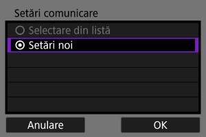 - Dacă selectaţi [Selectare din listă] când setările sunt deja înregistrate în aparat, puteţi aplica setările deja înregistrate.