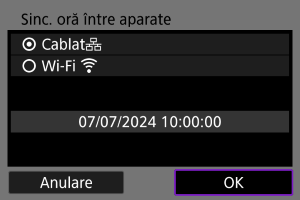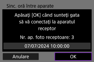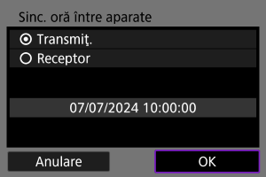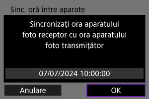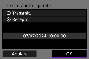 Sincronizaţi ora pe aparatele transmiţător şi receptor după cum urmează.