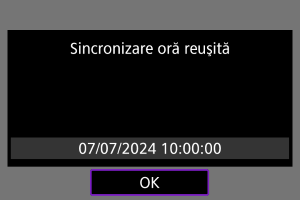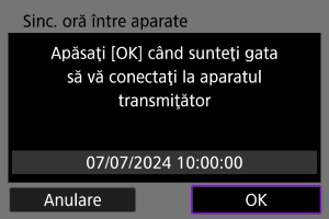 Începeţi sincronizarea orei pe aparatul transmiţător.
