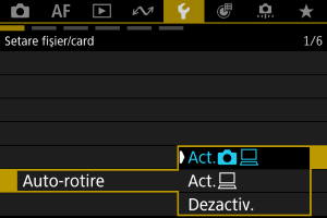 Puteţi modifica setarea pentru auto-rotire care îndreaptă imaginile realizate vertical la afişare.