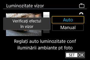 pentru a regla luminozitatea vizorului, apoi apăsaţi
