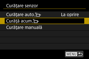 - Chiar dacă repetaţi curăţarea senzorului, rezultatul nu va fi cu mult mai bun. Este posibil să nu fie disponibilă opţiunea [Curăţă acum