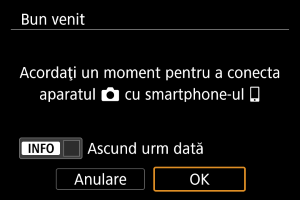Sunt afişate instrucţiuni pentru conectarea la un smartphone dacă selectaţi [OK] când apare ecranul de setare ().