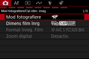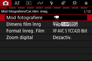 - Descrierea funcţiilor meniului care urmează presupune că aţi apăsat pe butonul