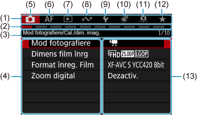 pentru a trece prin filele principale (grupuri de funcţii). De asemenea, puteţi schimba filele cu butonul pentru zoom.