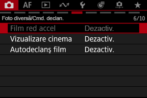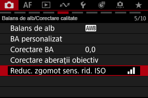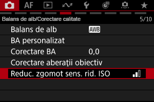 Articolele estompate din meniu nu pot fi setate. Articolul din meniu este estompat dacă o altă funcţie setată îl suprascrie.