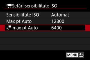 Puteţi setaţi limita maximă pentru ISO automat la filmarea în modul [], [