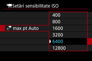 - Selectaţi valoarea ISO, apoi apăsaţi