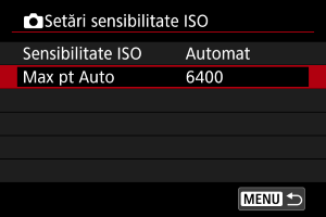 Pentru ISO [AUTO], puteţi seta valoarea maximă ISO.