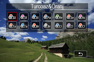 pentru a salva setările modificate şi pentru a reveni la ecranul pentru selectarea Stilului foto.