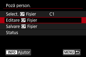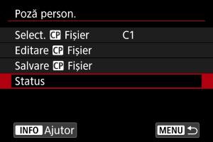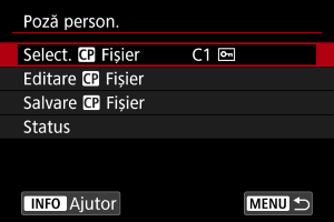 Puteţi verifica setările pentru fişierul imagine personalizată din meniul [Poză person.].